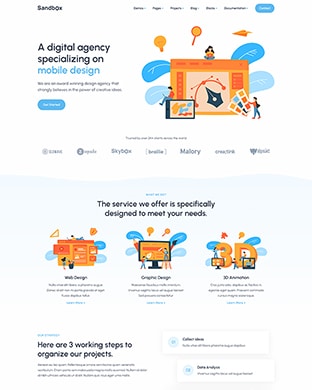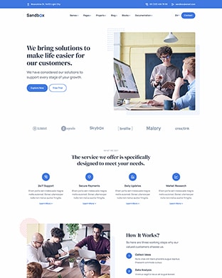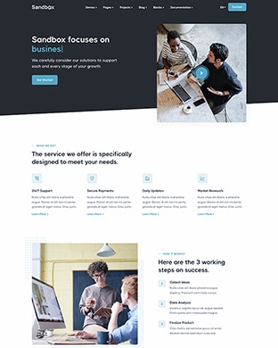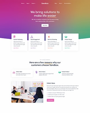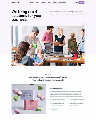 Sandbox includes amazing features and elements to create rich and attractive pages.
